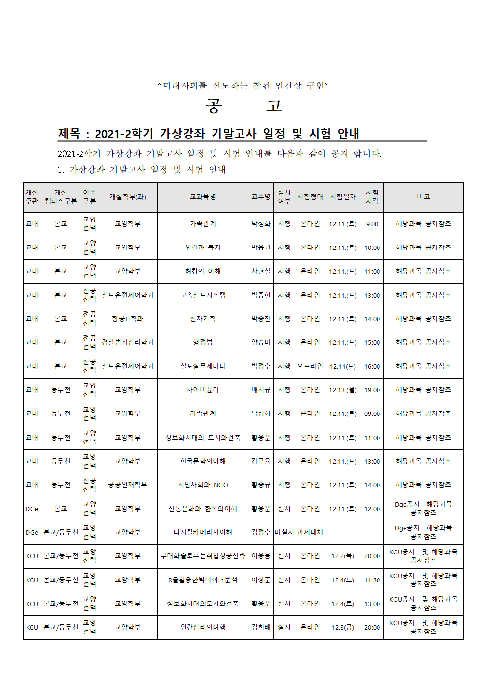HOME   >   공지사항   >   2021-2학기 가상강좌 기말고사 일정 및 시험 안내